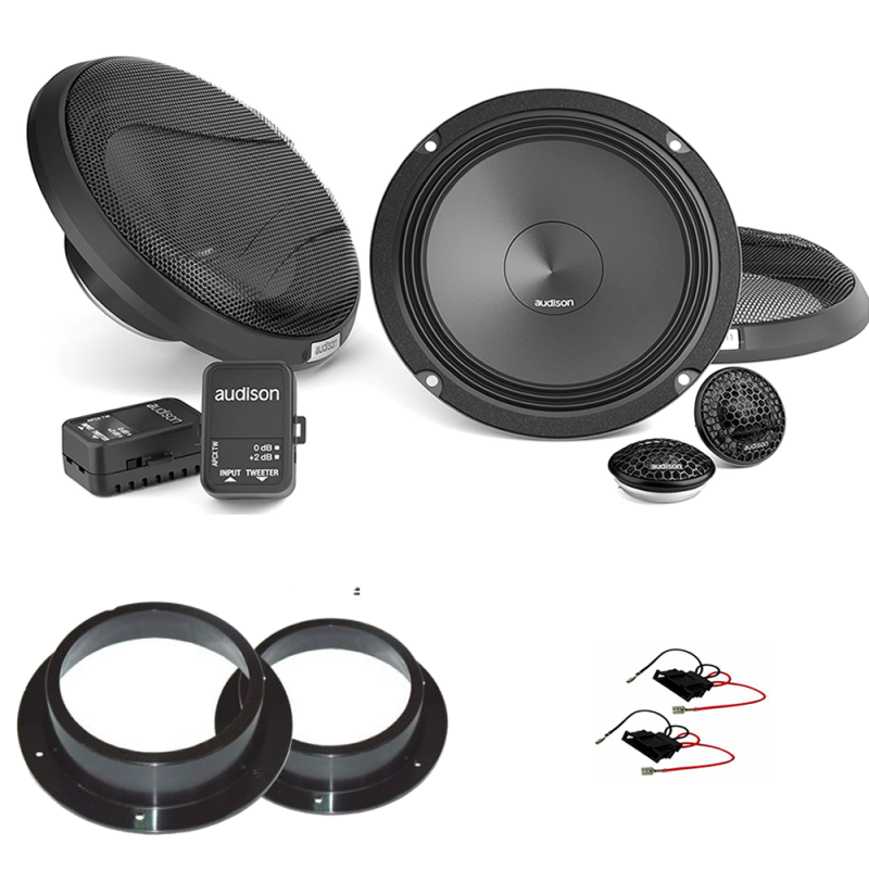 Il sistema a due vie è dotato di un tweeter AP 1 e di un woofer AP 6,5. Il crossover APCX TW è dotato di un selettore di livello a due posizioni che consente di adattare la risposta alle due applicazioni principali: +2dB se installato dietro la griglia OEM e 0dB per un'installazione sul montante A senza griglie aggiuntive tra il tweeter e l'ascoltatore. Per facilitare l'installazione in posizioni OEM, i woofer sono dotati di terminali fast-on ad alta corrente con doppio contatto sui poli positivo e negativo per una maggiore flessibilità e rapidità di connessione.