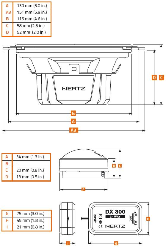 Hertz DSK 130.3 kit 2 vie con woofer ultrapiatto composto da coppia di midwoofer DV 130.3 + coppia di tweeter DT 24.3 + crossover + accessori di installazione.
